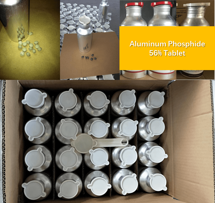 Aluminum Phosphide 56% TB fumigant insecticide for the control of pests in stored grain, seed, tobacco and storage premises. It can also be used for the control of porcupines, moles, gerbils and other rodents as indicated.
